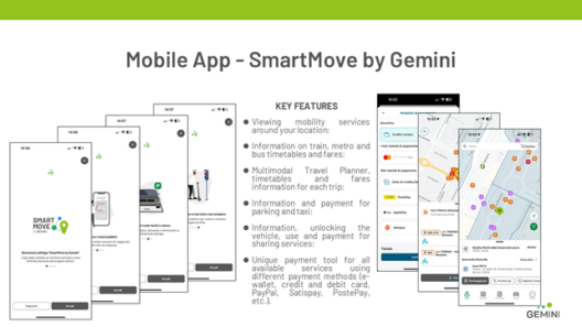 As part of the project, the SmartMove application is being launched, allowing users to plan, book and pay for multimodal journeys through a single digital interface. The app integrates trains, buses, taxis, parking facilities and shared micromobility, supporting both urban and cross-border trips.